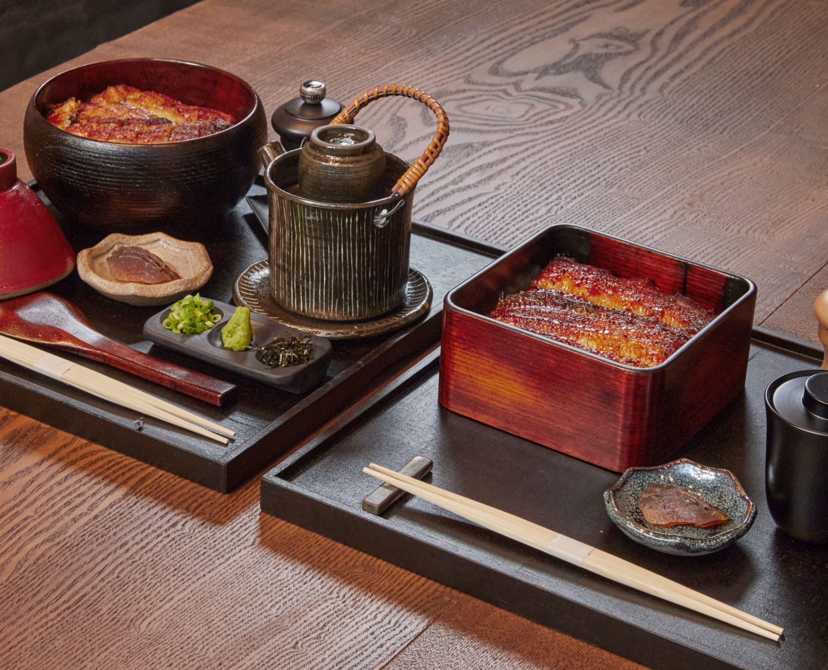 五代目うな清の「鰻」は季節ごと厳選した最高品質のものを各地より仕入れています。合わせる「お米」も「お米マイスター」と協力して、鰻に最も合う品種を採用し、土釜で熱々に炊き上げています。「鰻重」と「うなぎまぶし」、それぞれの楽しみ方に合わせて、異なるタレで仕上げ、鰻本来の素材の味を最大限に引き出しました。鰻とお米の絶妙な調和をお楽しみください。